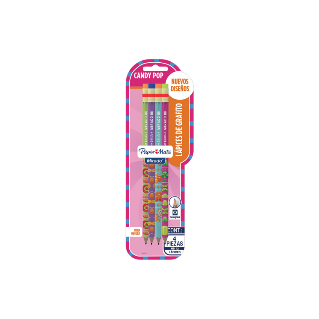 LAPIZ NO. 2 MIRADO DE GRAFITO CANDY POP C/4 PAPERMATE